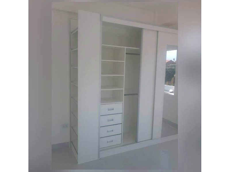 Clóset empotrado de puertas corredizas con un diseño moderno y funcional, realizado en MDF recubierto con una lámina melamínica de color blanco. Su diseño moderno y su color blanco lo convierten en una pieza versátil que se adapta a cualquier ambiente.
