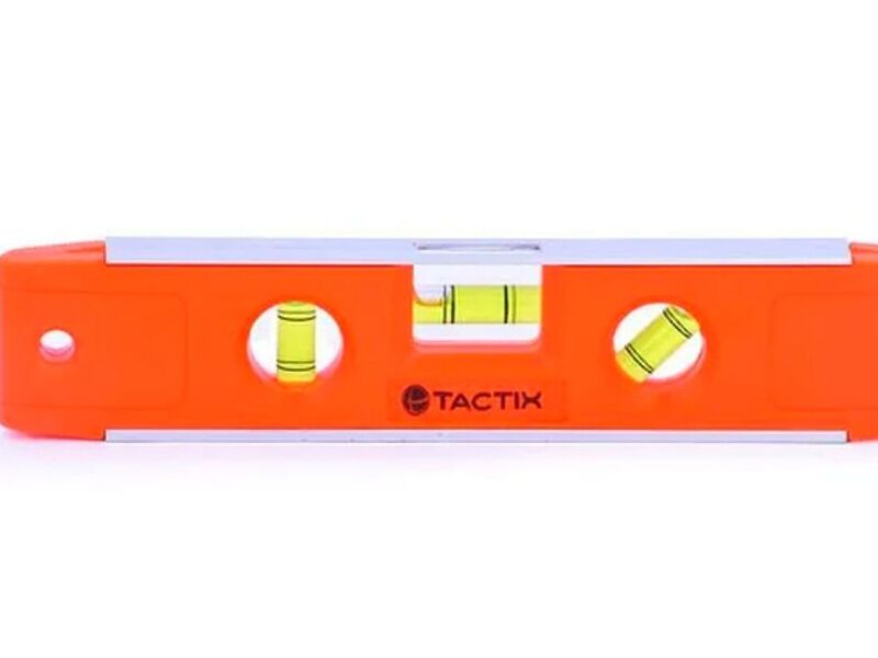 Nivel no solo es compacto y se adapta bien a su cinturón de herramientas, sino que está equipado con 3 viales de alcohol a 0 °, 45 °, 90 ° y una práctica base magnética que permite nivelar e instalar la pieza de trabajo con manos libres.