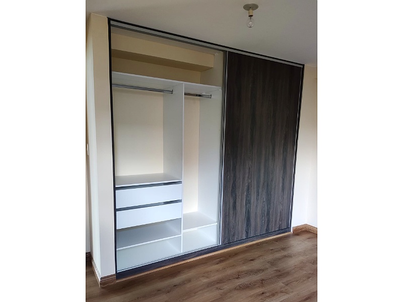 Ahorra espacio y mantén tu habitación ordenada con este closet con puertas correderas, ideal para habitaciones pequeñas y modernas.