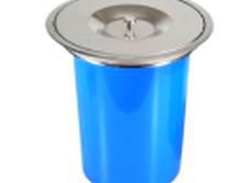 Basurero de empotrar en mesada con tapa giratoria de lujo. Material acero inoxidable 304 cepillado en la tapa, canastillo en material plastico. Marca Zhen, industria china clase A.