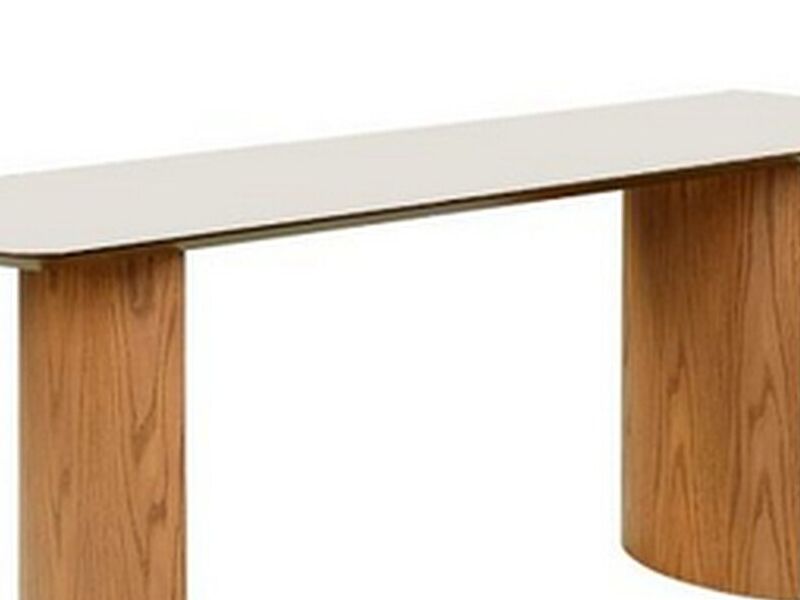 Consola con tapa ovalada, dentro de la simpleza de su diseño, se encuentra la practicidad, la tapa brillo off white tiene un acabado único.
