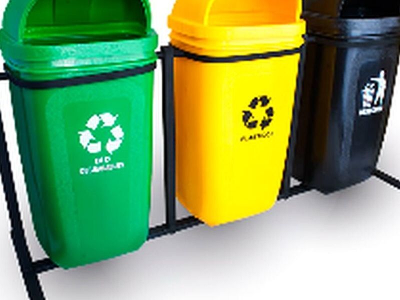 Basurero de 55 lt. C/Poste triple