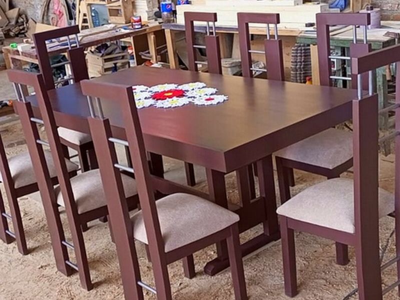 Juego de comedor de 8 sillas madera pino.