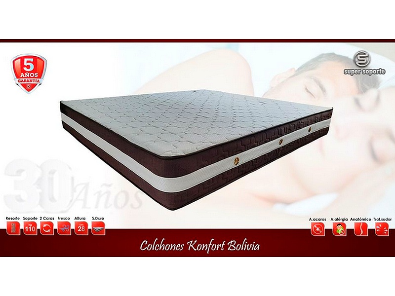 Descubre el colchón SS, diseñado especialmente para proporcionar un soporte excepcional y un descanso reparador. Su estructura Super Soporte ofrece una base firme, ideal para personas de alto peso. Con tratamientos especiales, este colchón es fresco y ayuda a controlar la humedad, manteniendo un ambiente saludable. Además, cuenta con propiedades anti ácaros, antibacteriales y anti alérgicas para tu tranquilidad. Respaldado por una garantía de cinco años y soporte técnico personalizado, es una opción confiable en Bolivia.
