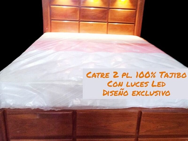 Cama 2 plazas en madera de tajibo con luces led.