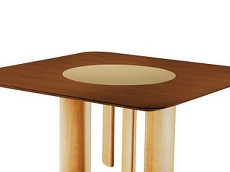Mesa cuadrada color damasco.