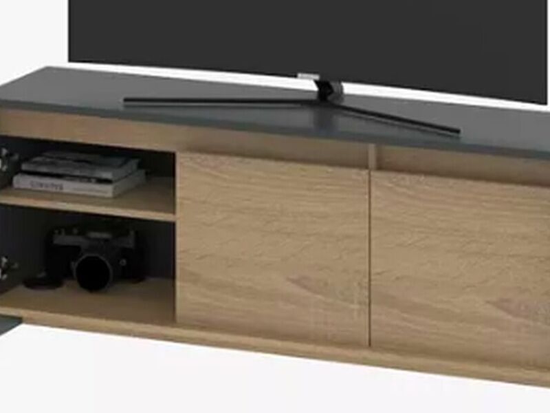 Diseñada específicamente para sostener equipos electrónicos como televisores, reproductores de DVD y consolas de videojuegos, con espacio adicional en estantes abiertos para otros dispositivos o decoraciones.