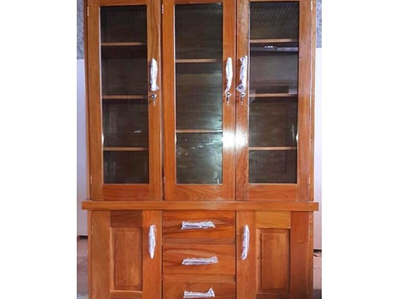 Vitrina 2 cuerpos en madera de tajibo.