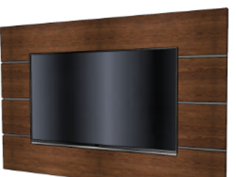Panel de TV de diseño limpio de lineas rectas, una superficie sobre puesta de un acabado elegante y prolijo una combinación moderna pero cálida gracias a la textura amaderada.