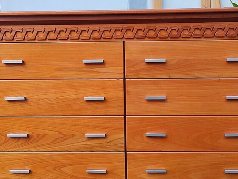 Cómoda en madera cedro, acabado mate.