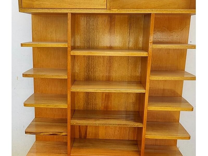 Mueble porta zapatos en madera, acabado natural.