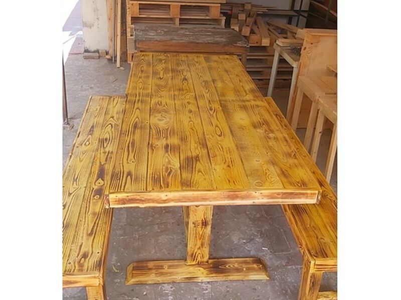 Mesa exterior con bancas rústica.