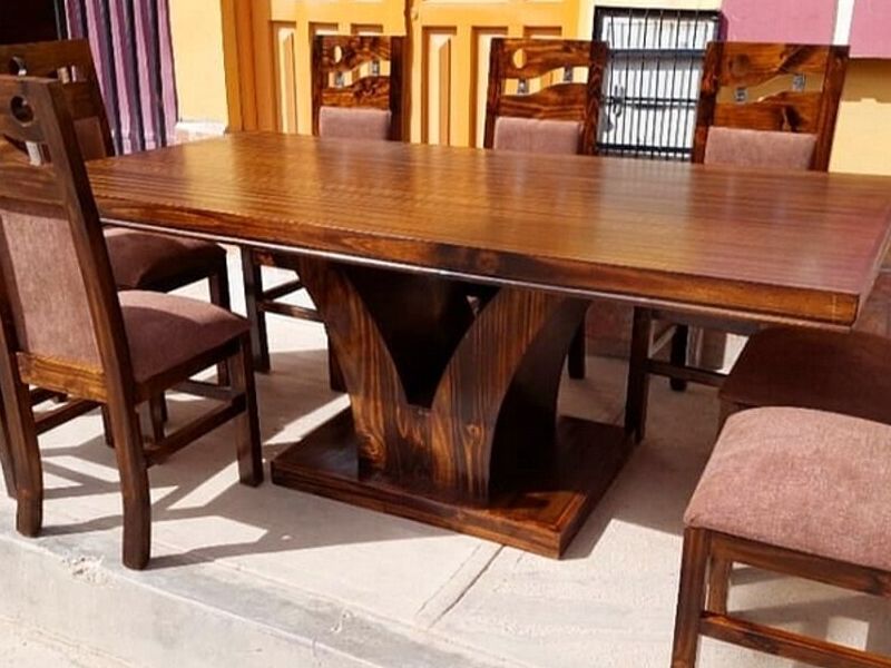 Comedor 8 sillas en madera de pino.
