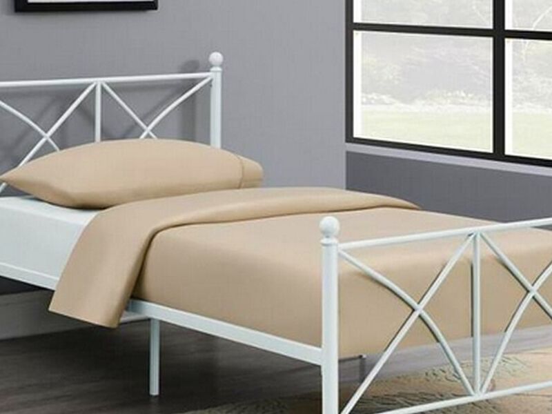Cama tamaño twin con cabecero de marco abierto.