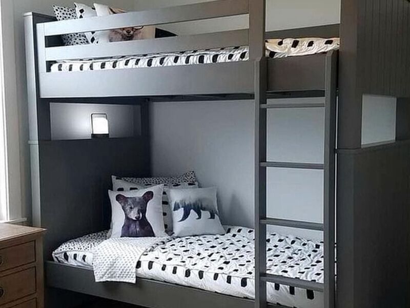 Cama superpuesta con baranda y escalera.