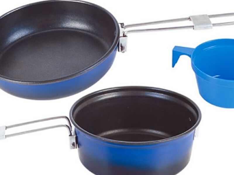 El juego de cocina TRIP viene con 1 olla (1,2 litros), 1 sartén (600 ml) y 1 taza de plástico (200 ml). Y para tu comodidad, también viene con una bolsa de transporte incluida.