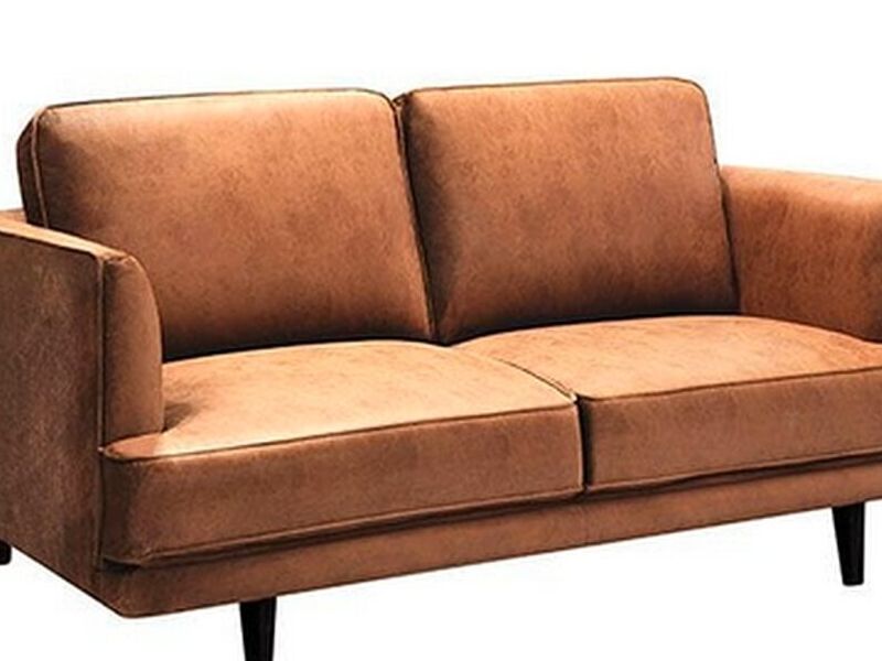 Sofá 2 cuerpos color caramelo.