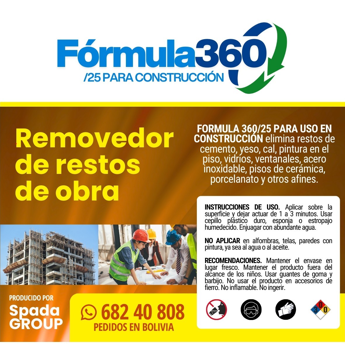 Ahora en Bolivia FORMULA 360, una innovadora solución de limpieza multipropósito, eficiente y diseñada específicamente para los desafíos únicos de su sector construcción. Ya sea en obras en progreso, maquinaria pesada, superficies de concreto, acero, vidrio o áreas comunes, nuestro producto elimina residuos complejos como: cemento, pintura o polvo industrial, TODO en un solo paso, reduciendo tiempos de limpieza hasta en un 70% y optimizando costos operativos. Garantizando resultados inmediatos, duraderos y seguro para sus equipos.