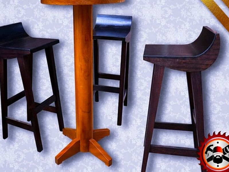 Juego de bar en madera de roble. Barniz de alta resistencia.