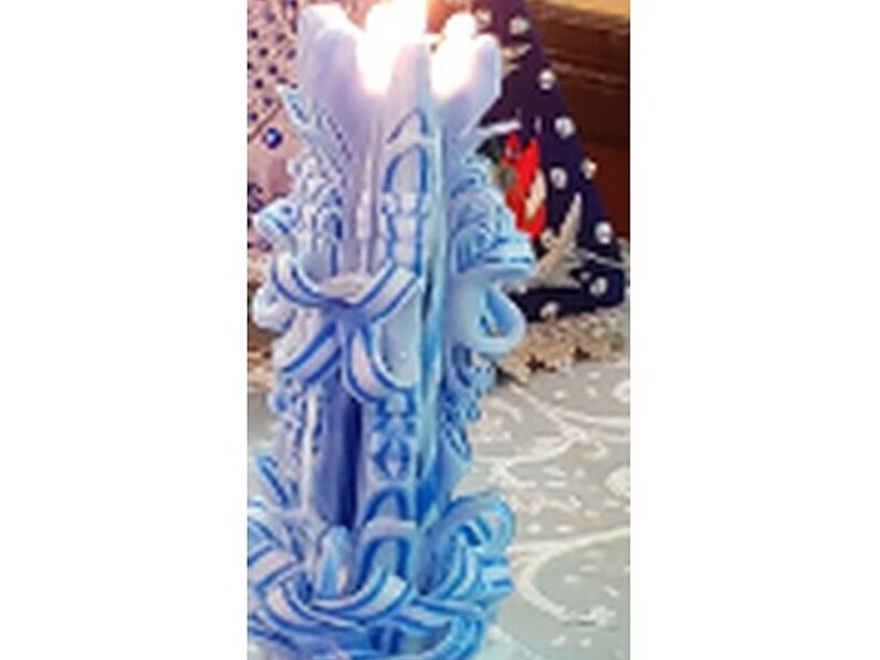Hermosa vela en tono celeste ideal para decorar tu hogar.